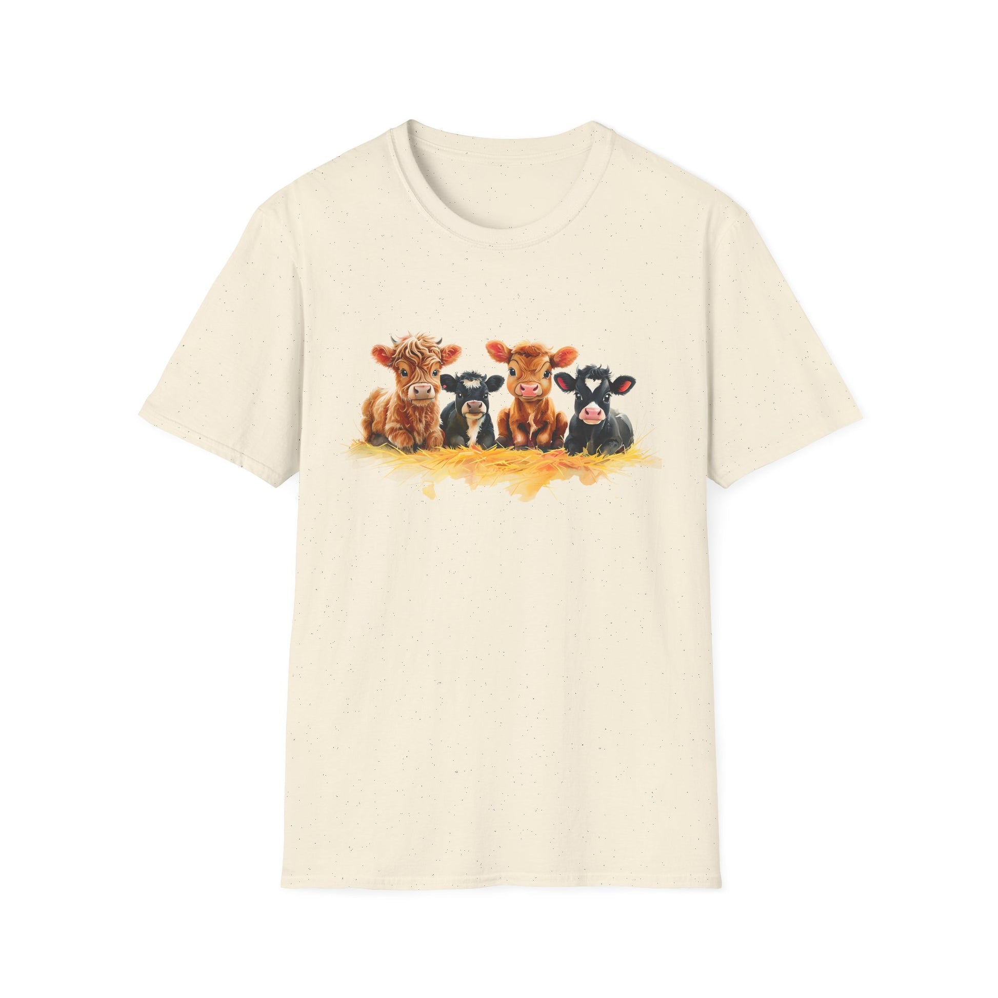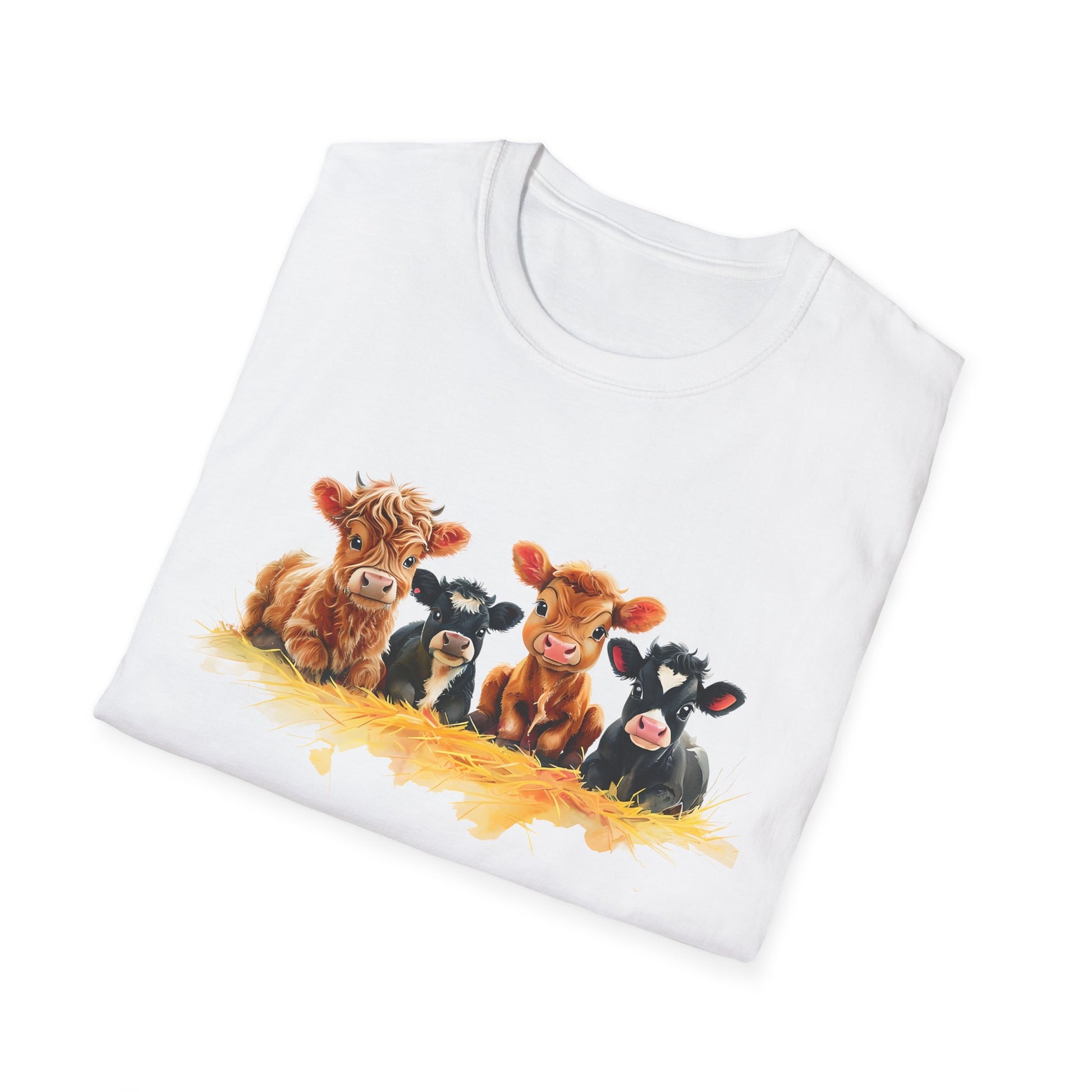 Introducing a delightful Unisex Softstyle T-Shirt that brings a warm, playful vibe to your wardrobe. This charming tee features an adorable graphic of cows, perfect for animal lovers and those who appreciate a fun twist to casual wear. Versatile and stylish, it can effortlessly transition from a casual day out to gathering with friends or family. Ideal for everyday wear, this t-shirt makes a thoughtful gift for birthdays, holidays, or any special occasion. Whether you're celebrating a farm-themed event or simply want to express your love for nature, this t-shirt resonates with all ages, bringing smiles and conversation starters wherever you go.