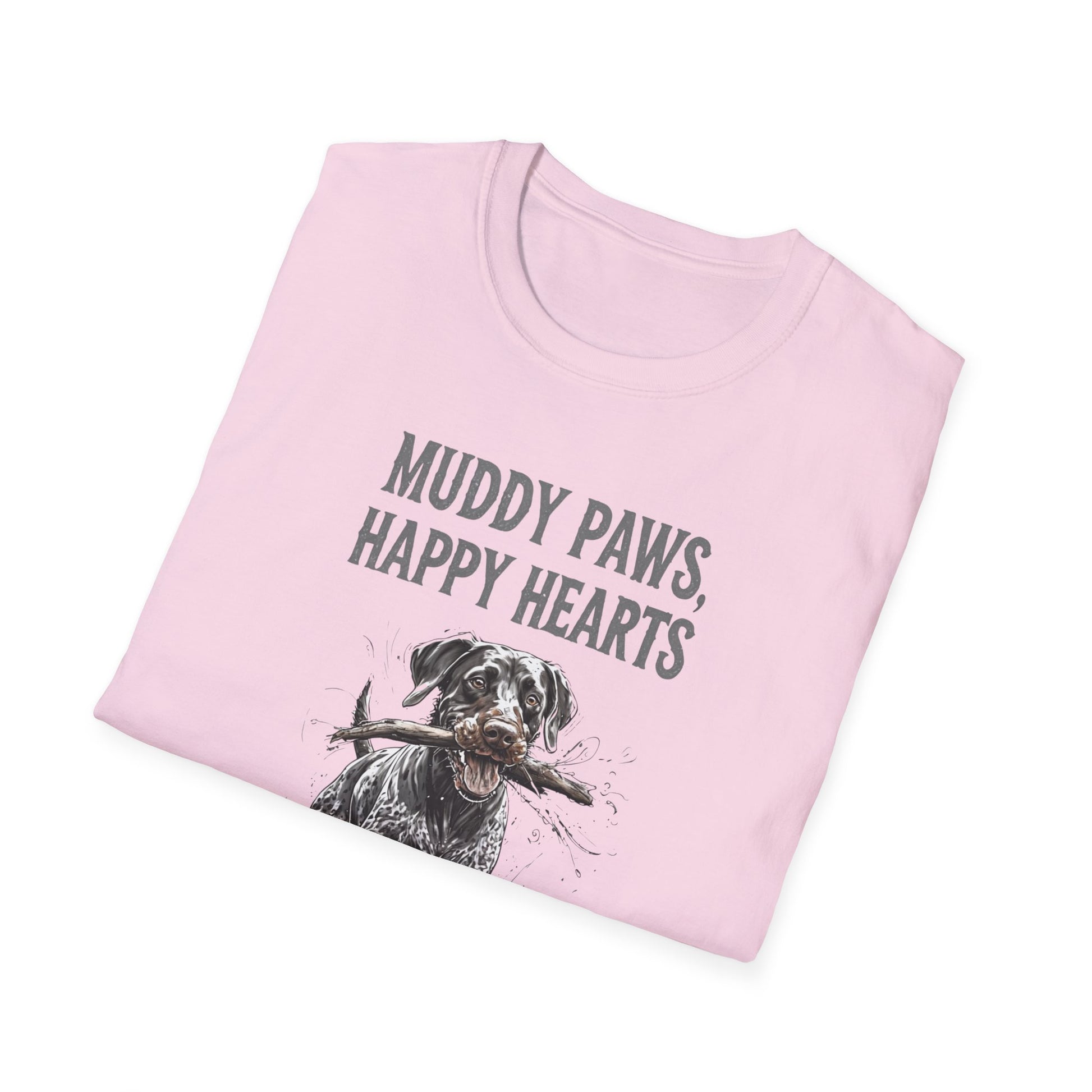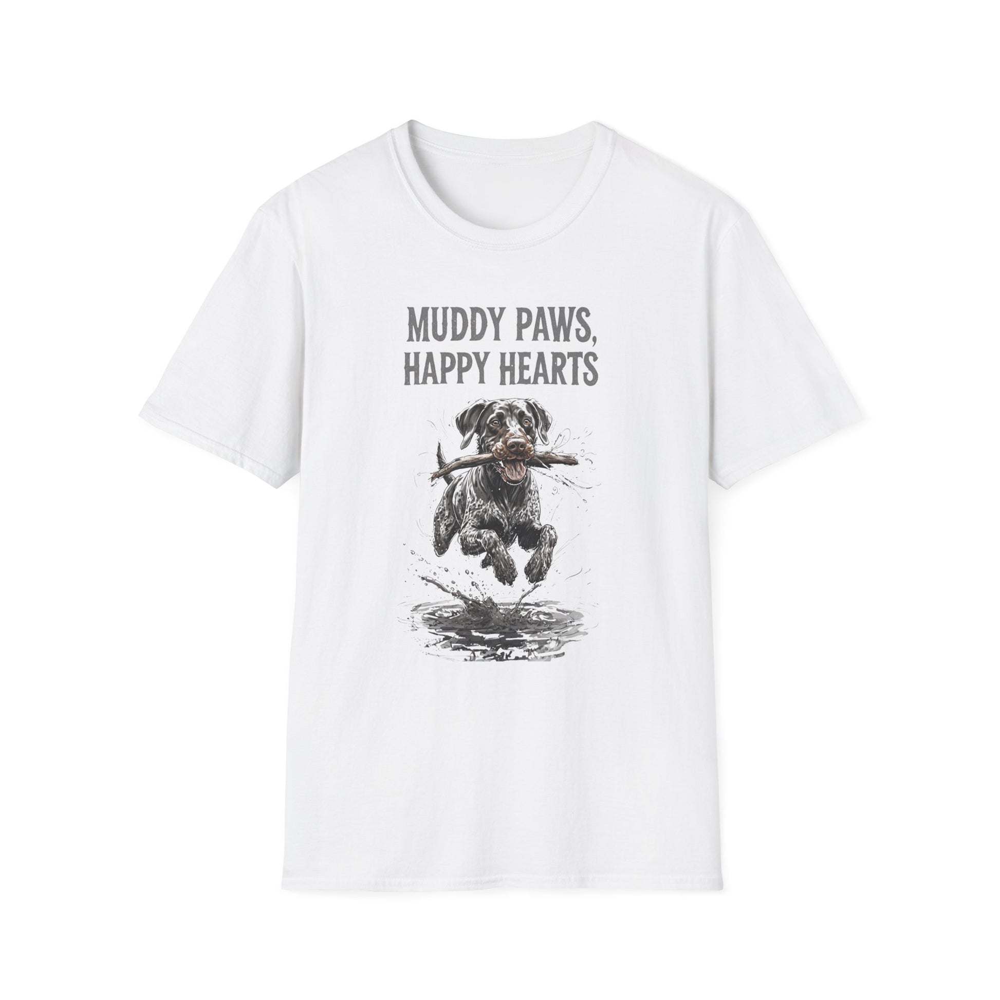 T-shirt for Dog lovers Muddy Paws, Happy Hearts Unisex Softstyle T-Shirt – Perfect for Dog Lovers